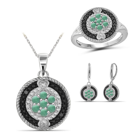 1/3 Carat T.G.W. Emerald And Black & White Diamond Accent Sterling Silver Or 14K Gold-Plated Ring