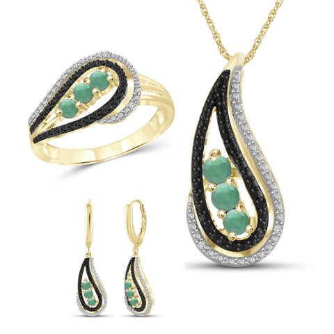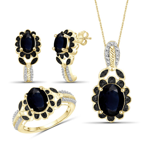6.00 Carat T.G.W. Sapphire And Black & White Diamond Accent 14K Gold-Plated 3-Piece Jewelry set