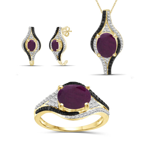 6.00 Carat T.G.W. Ruby And Black & White Diamond Accent 14K Gold-Plated 3-Piece Jewelry set