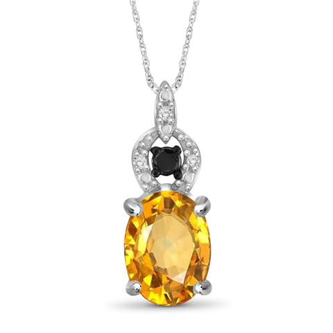 1 1/10 Carat T.G.W. Citrine And Black & White Diamond Accent Sterling Silver Pendant, 18"