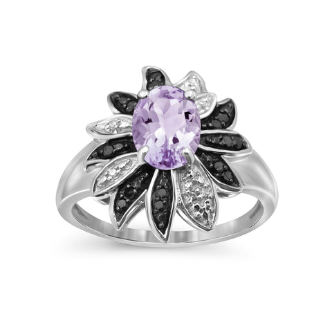 1.09 Carat Pink Amethyst Gemstone and 1/10 Carat Black and White Diamond Sterling Silver Ring