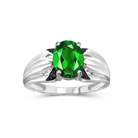 1 1/2 Carat T.G.W. Chrome Diopside And 1/20 Carat T.W. Black Diamond Sterling Silver Ring