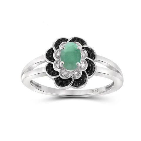 1/3 Carat T.G.W. Emerald And Black Diamond Accent Sterling Silver Ring