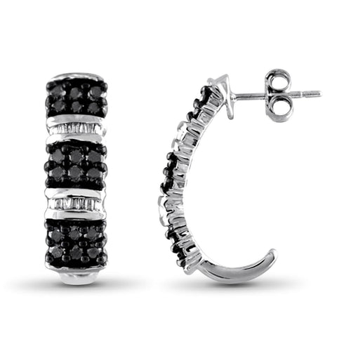 Black & White Diamond Earrings Women – 1-Carat Black & White Diamonds .925 Sterling Silver Or 14k Gold over Silver Hoop Earrings Small – Hypoallergenic Hoop Earrings – Small Hoop Earrings Diamond Hoops – Black & White Hoop Earrings for Women
