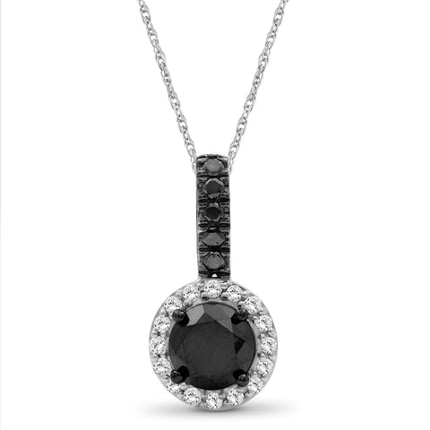 Diamond Halo Pendants – 2.00 CTW Black & White Diamond Halo Pendant, Sterling Silver Pendant Band – Black Pendant Diamond Pendants for Women – Birthday Gifts