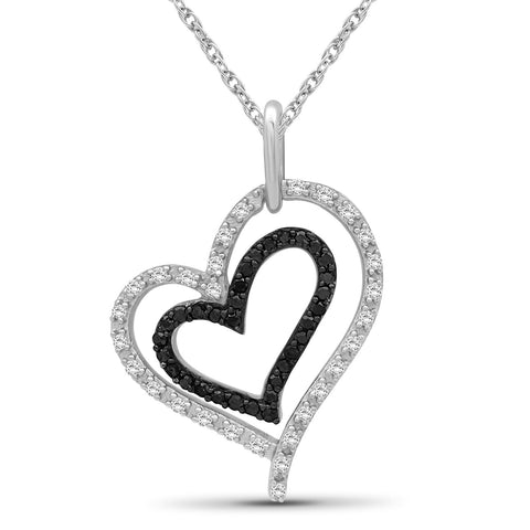 Sterling Silver (.925) Heart Necklace with 1/4 Carat Black and White Diamonds | Jewelry Pendant Necklaces for Women Black and White Diamonds & 18 inch Rope Chain with Spring Clasp
