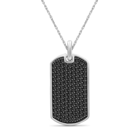 Dog Tag Necklaces for Women Sterling Silver Necklace – 1 CTW Black Diamond Necklace – .925 Silver Chain Necklace Pendant – Black Diamond Necklace