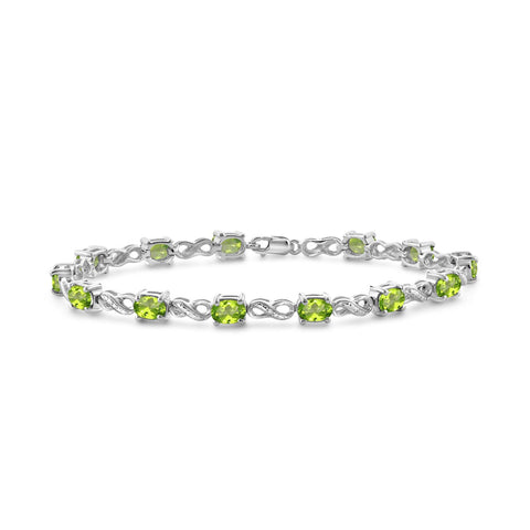 3.00 Carat T.G.W. Peridot And White Diamond Accent Sterling Silver Bracelet