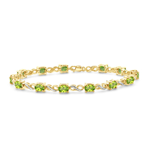 6 1/4 Carat T.G.W. Peridot And White Diamond Accent 14K Gold-Plated Bracelet
