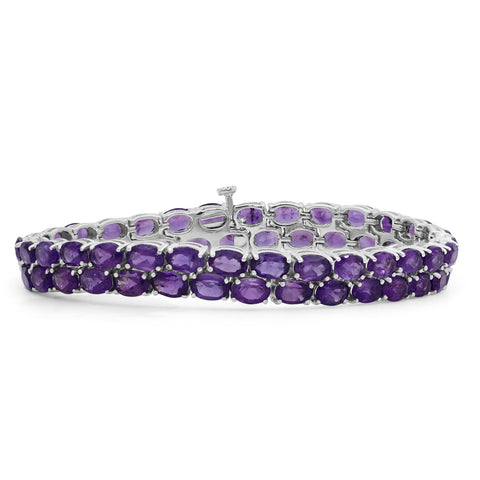 Amethyst Bracelet for Women – Genuine, Double-Row Purple Amethyst Jewelry – 925 Sterling Silver Bracelets – Birthstone Bracelet Sterling Silver Jewelry Gifts for Women