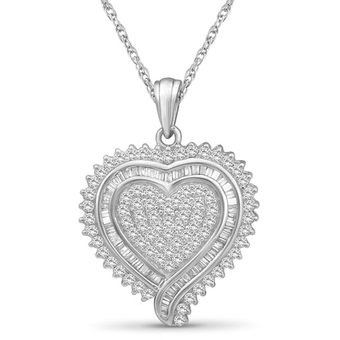Heart Necklace with 1.00 Carat White Diamonds | .925 Sterling Silver or 14K Gold-Plated Silver | Pendant for Women & 18" Rope Chain with Spring Clasp
