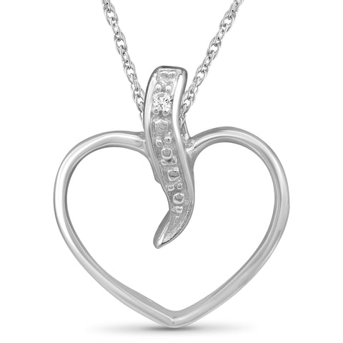 Heart Necklace with White Diamond Accent | Sterling Silver (.925) or 14K Gold-Plated Silver | Jewelry Pendant Necklaces for Women & 18 inch Rope Chain with Spring Clasp
