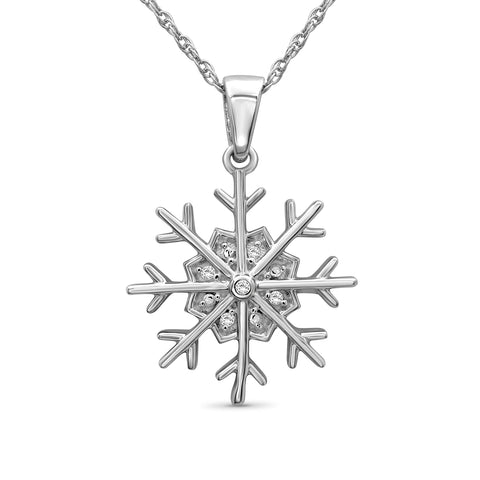 Snowflake Necklace Diamond Necklaces for Women – Genuine White Diamond, . 925 Sterling Silver Necklace Snowflake – Christmas Gifts for Women – Silver Diamond Pendant Necklace for Women