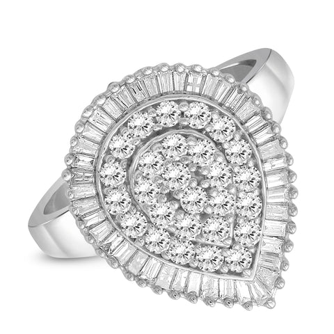 White Diamond 1 Carat Ring with Sterling Silver for Women & Girls | Teardrop Halo PromiseRing with Round & Baguette Cut Diamonds