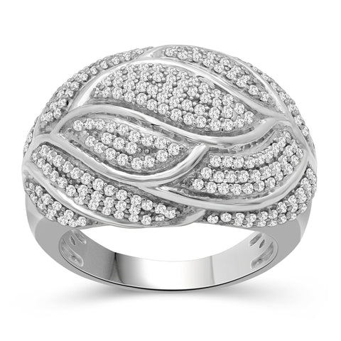 White Diamond 1 Carat Ring with Sterling Silver for Women & Girls | Dome Shape Promise Ring with Round Cut Diamonds