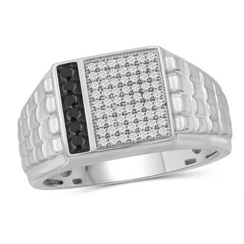 Black & White Diamond Rings for Men – 1/3 CTTW Genuine Black Diamond Ring for Men – Hypoallergenic Sterling Silver or 14K Gold over Silver Ring Men – Real Diamond Mens Rings Fashion Statement Ring – Luxurious Gifts for Him