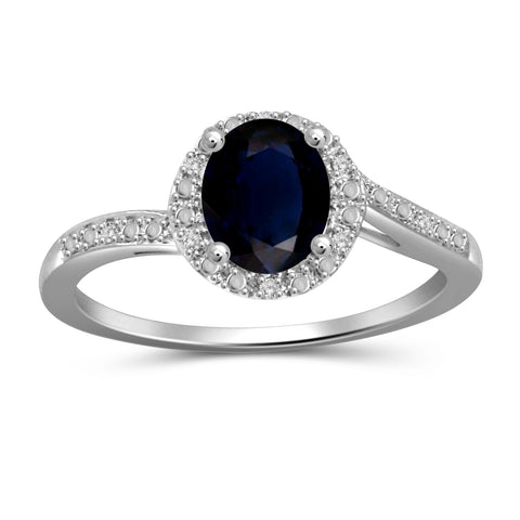 Sapphire Ring September Birthstone Jewelry – 1.00 Carat Sapphire Sterling Silver Ring Jewelry with White Diamond Accent – Gemstone Rings with Hypoallergenic Sterling Silver Band