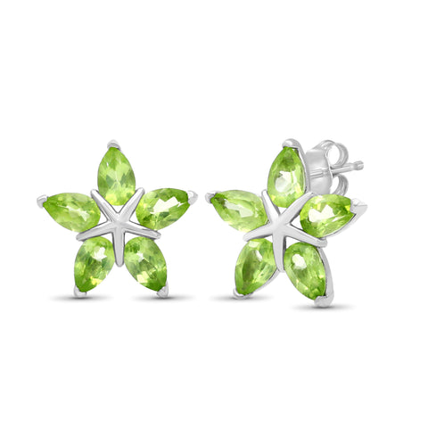 7 1/2 Carat T.G.W. Peridot Gemstone 0.925 Sterling Silver Flower Earrings