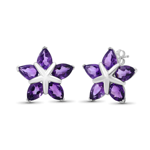 6.00 Carat T.G.W. Amethyst Gemstone Sterling Silver Flower Earrings