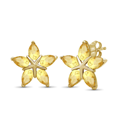 6.00 Carat T.G.W. Citrine Gemstone 14K Gold Over Silver Flower Earrings