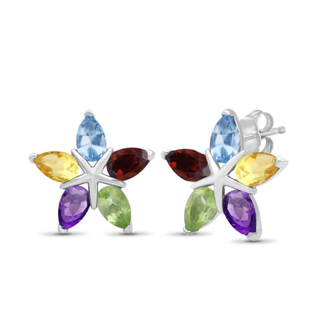 1 1/2 Carat T.G.W. Multi Color Gemstone Sterling Silver Flower Earrings