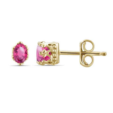 0.65 Carat Genuine Ruby and White Topaz stud Earrings in 14k Gold Over Silver