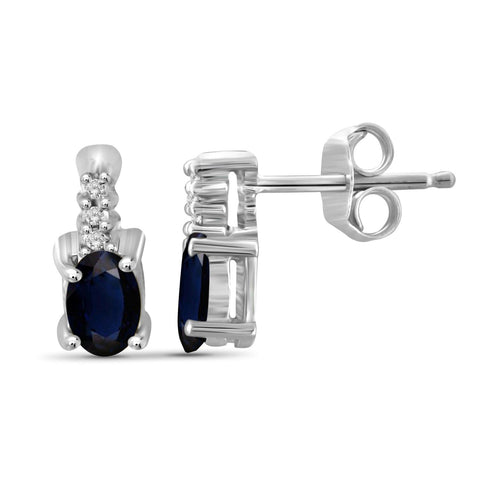 0.60 Carat Genuine Sapphire and Accent White Diamond stud Earrings in Sterling Silver