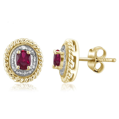 0.45 Carat Genuine Ruby and Accent White Diamond stud Earrings in 14k Gold over Silver