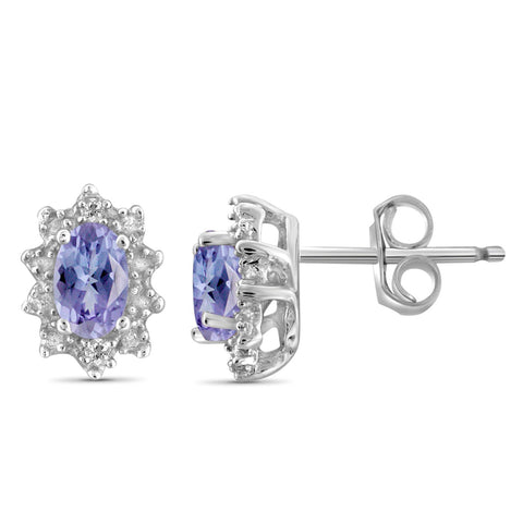 0.44 Carat Genuine Tanzanite and Accent White Diamond Halo stud Earrings in Sterling Silver