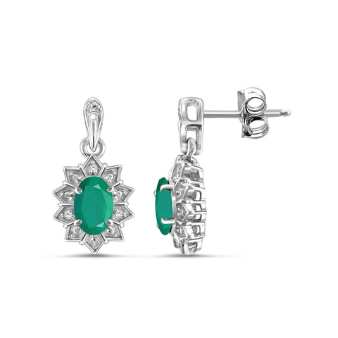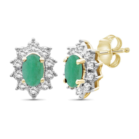 0.55 Carat Genuine Emerald and White Topaz stud Earrings in 14k Gold Over Silver