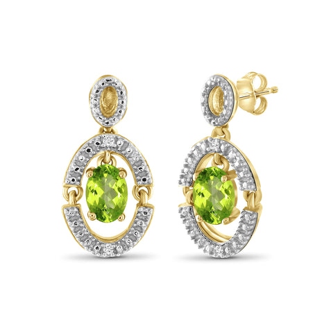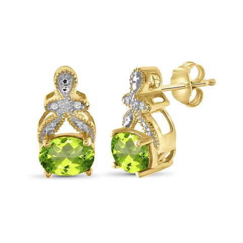 1 1/2 Carat T.G.W. Peridot And White Diamond Accent 14K Gold-Plated Stud Earrings