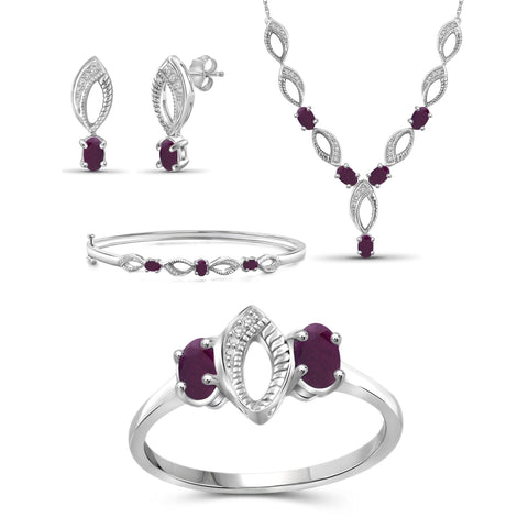 3.00 Carat T.G.W. Ruby And White Diamond Accent Sterling Silver 4-Piece Jewelry set