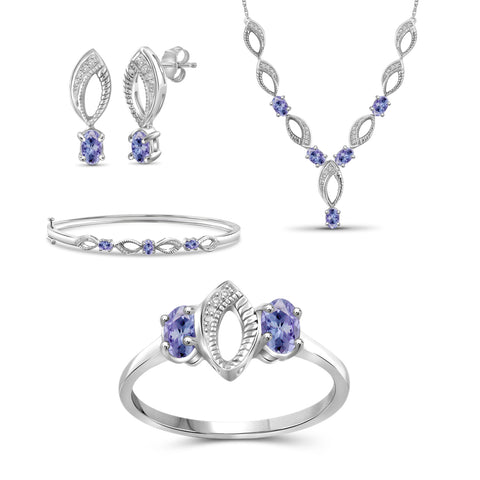2 3/4 Carat T.G.W. Tanzanite And White Diamond Accent Sterling Silver 4-Piece Jewelry set