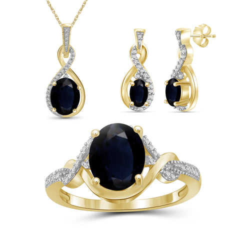4 1/2 Carat T.G.W. Sapphire And White Diamond Accent 14K Gold-Plated 3-Piece Jewelry set