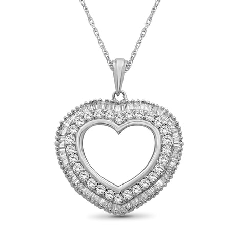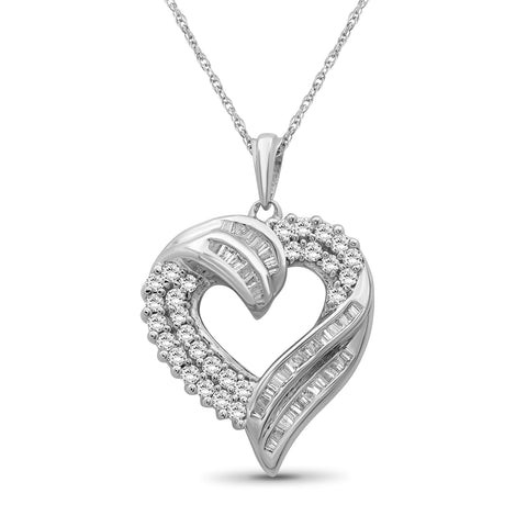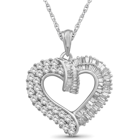 Heart Necklace with 1.00 Carat White Diamonds | .925 Sterling Silver or 14K Gold-Plated Silver | Pendant for Women & 18" Rope Chain with Spring Clasp