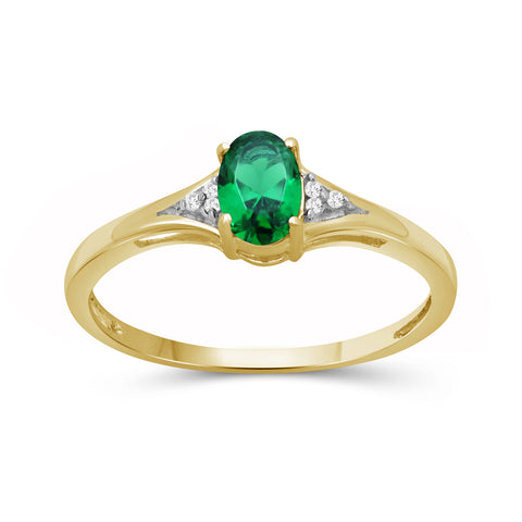 0.46 Carat T.G.W. Emerald Gemstone and 1/10 Carat T.W. White Diamond Sterling Silver Ring