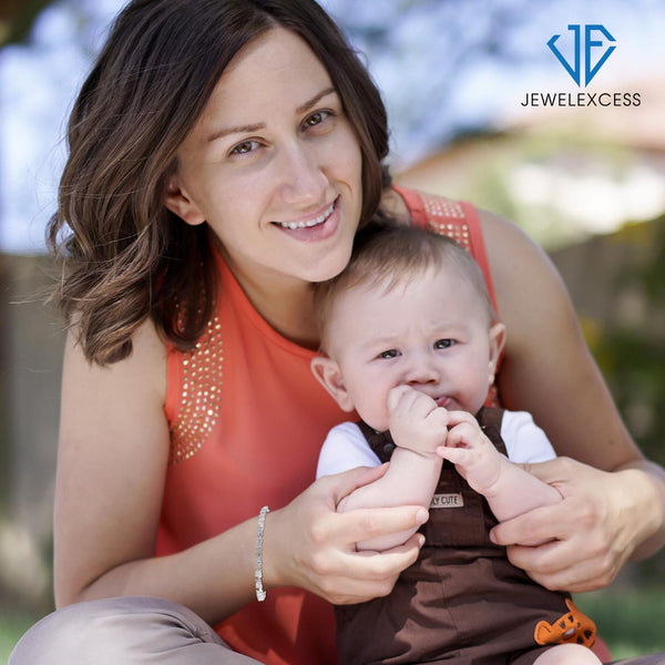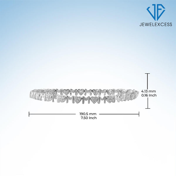JEWELEXCESS Mom Bracelets for Women – Beautiful Sterling Silver Bracelets for Women with Lobster Clasp & Heart White Diamonds – Perfect Mothers Day Gifts