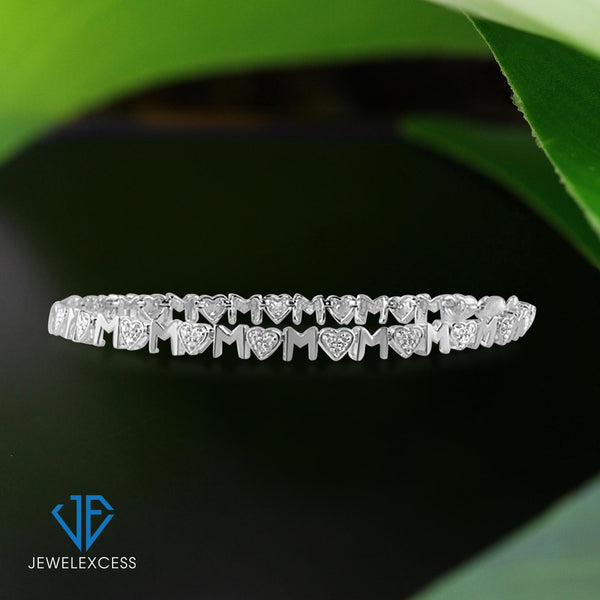 - The JewelExcess silver bracelet features a meaningful combination of heart links with glittering white diamonds and patterned links that spell out “MOM” with hearts, symbolizing the eternal love you have for your amazing mom. Choose from Sterling Silver according to your mom’s style preference to truly make it hers.