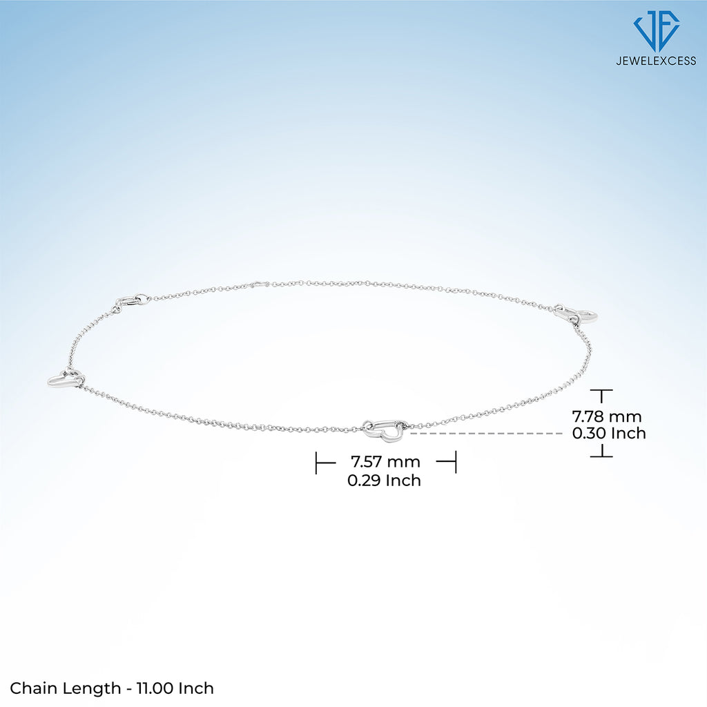 JEWELEXCESS Ankle Bracelet for Women – .925 Sterling Silver Anklets for Women – Heart Anklets for Women,Ankle Bracelets for Women – Adjustable 11 Inch Anklet – Heart Gifts for Women