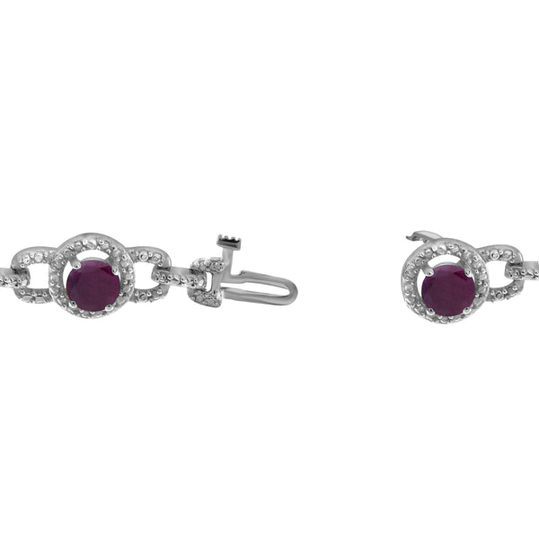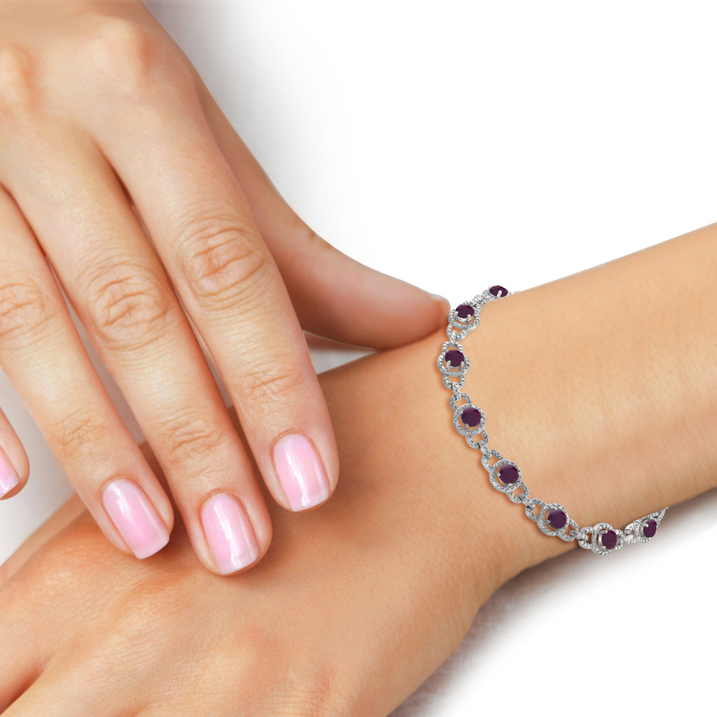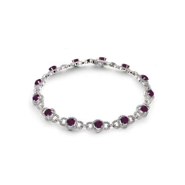 4.20 Carat Ruby and 1/20 Carat White Diamond Bracelet in Sterling Silver