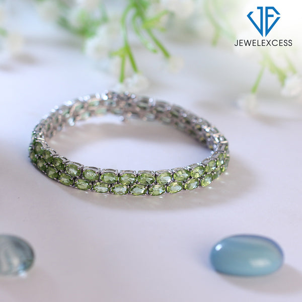 - A silver bracelet can be the perfect accessory to compliment your look – but strong, long-lasting materials are essential for a womens bracelet you can accessorize with for years to come. At JewelExcess, we craft our Oval Peridot Double-Row Bracelet with genuine oval-shaped Peridot stones, set in highly durable .925 Sterling Silver – for a quality-crafted gemstone bracelet that’s made to last.