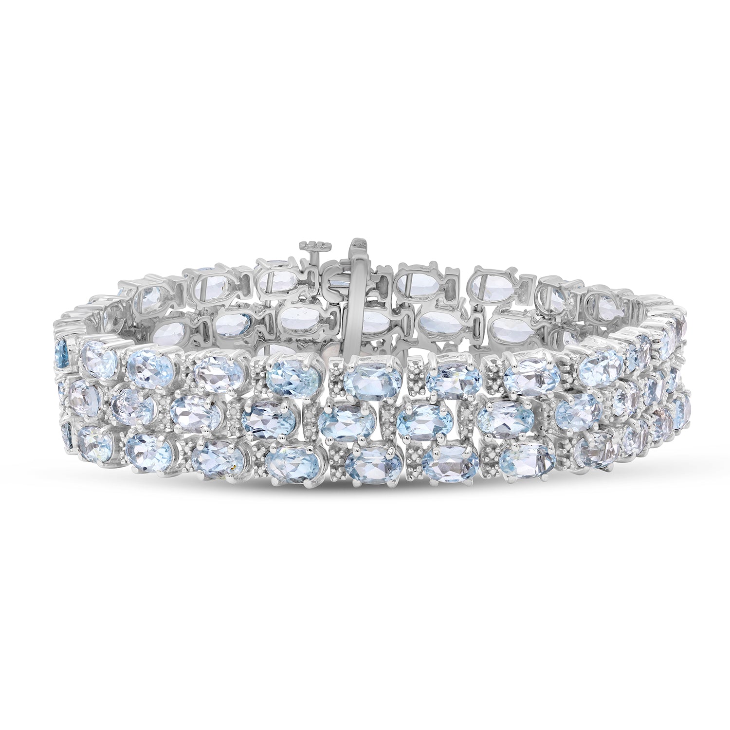 At JewelExcess, we craft our Oval Sky Blue Topaz Triple-Row Bracelet with only the best, most durable materials, using genuine Sky Blue Topaz stones set in strong, long-lasting .925 Sterling Silver with a dependable Box clasp – to ensure that this stunning piece stays safely & securely on your wrist.