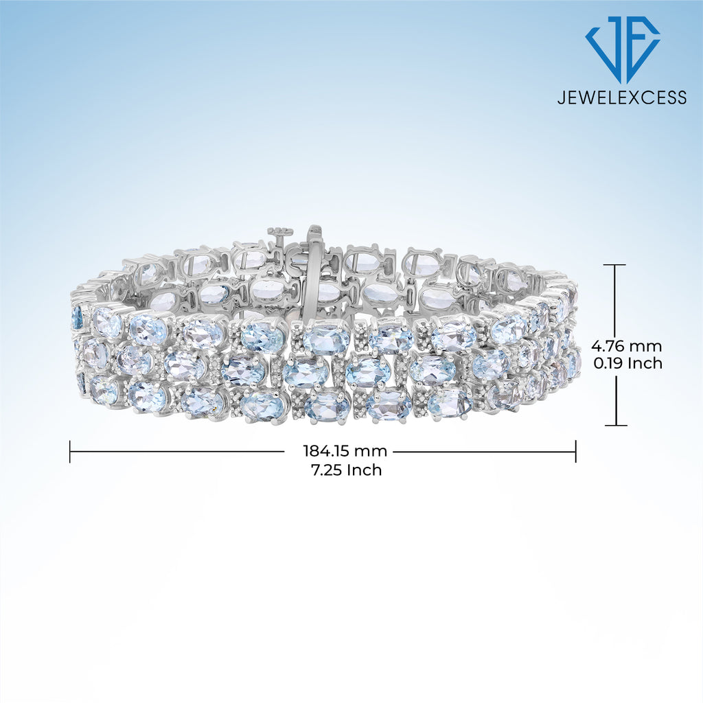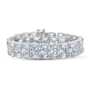 The JewelExcess Oval Sky Blue Topaz Triple-Row Bracelet features:
