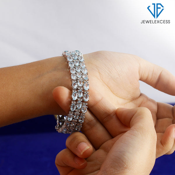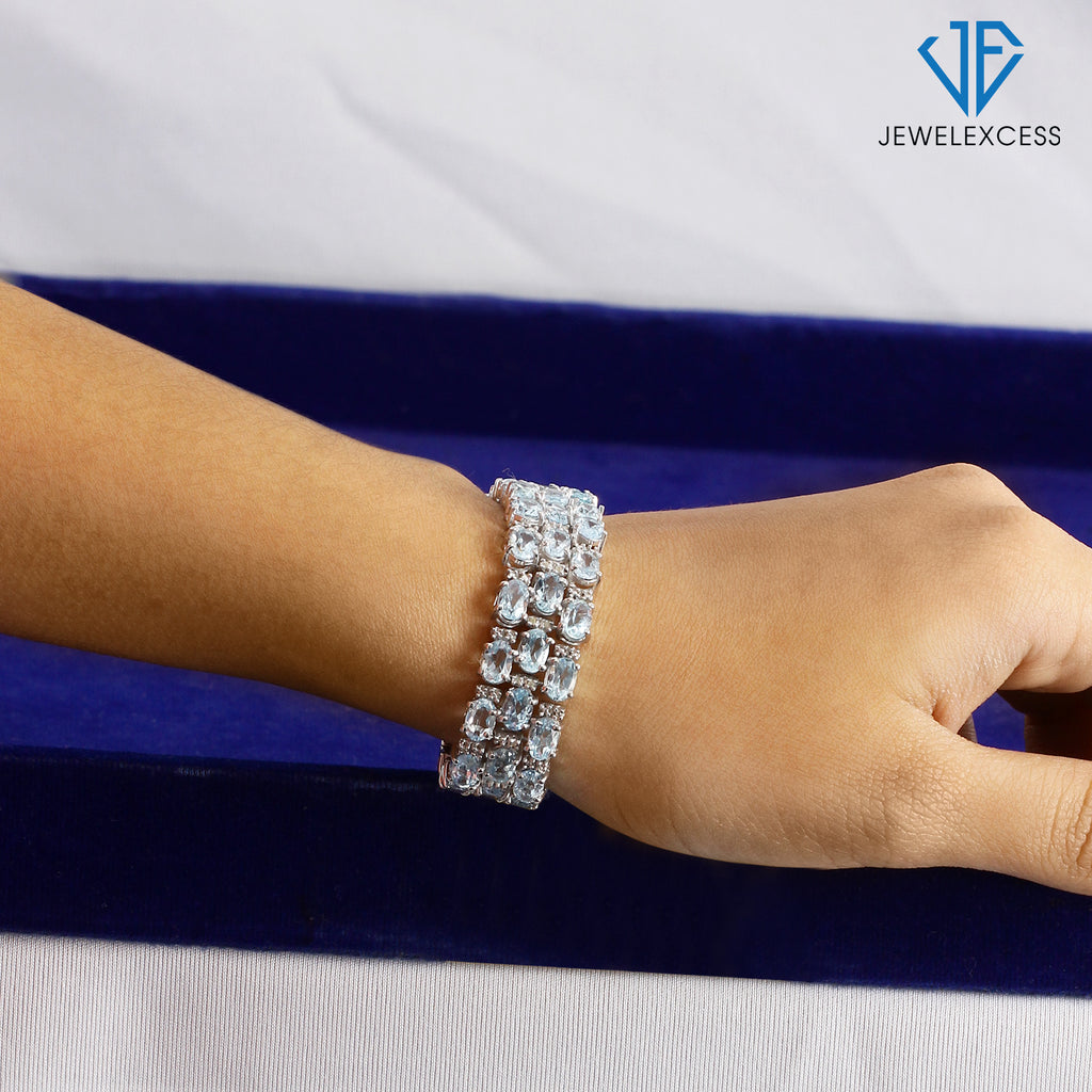 - A silver bracelet can be the perfect accessory to compliment your look – but strong, long-lasting materials are essential for a womens bracelet you can accessorize with for years to come. At JewelExcess, we craft our Oval Sky Blue Topaz Triple-Row Bracelet with genuine oval-shaped Sky Blue Topaz stones, set in highly durable .925 Sterling Silver – for a quality-crafted gemstone bracelet that’s made to last.