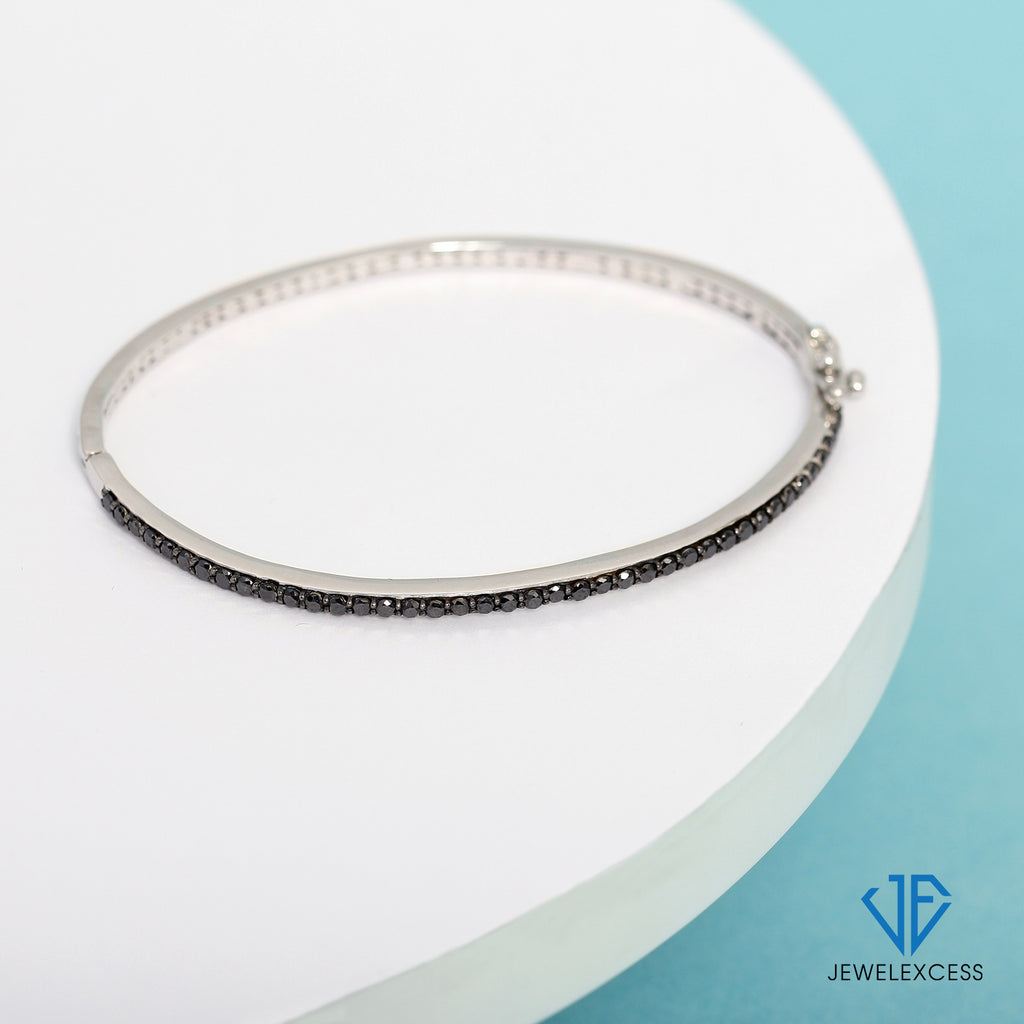 - While many diamond bangles for women turn out to have dull, lackluster stones without any sparkle, the JewelExcess 1 Carat Black Diamond Bangle features premium, genuine Black Diamonds set in a lustrous Sterling Silver. This delicate diamond bangle for women is the perfect complement to any outfit, adding a touch of glam to your everyday look.
