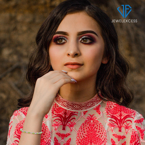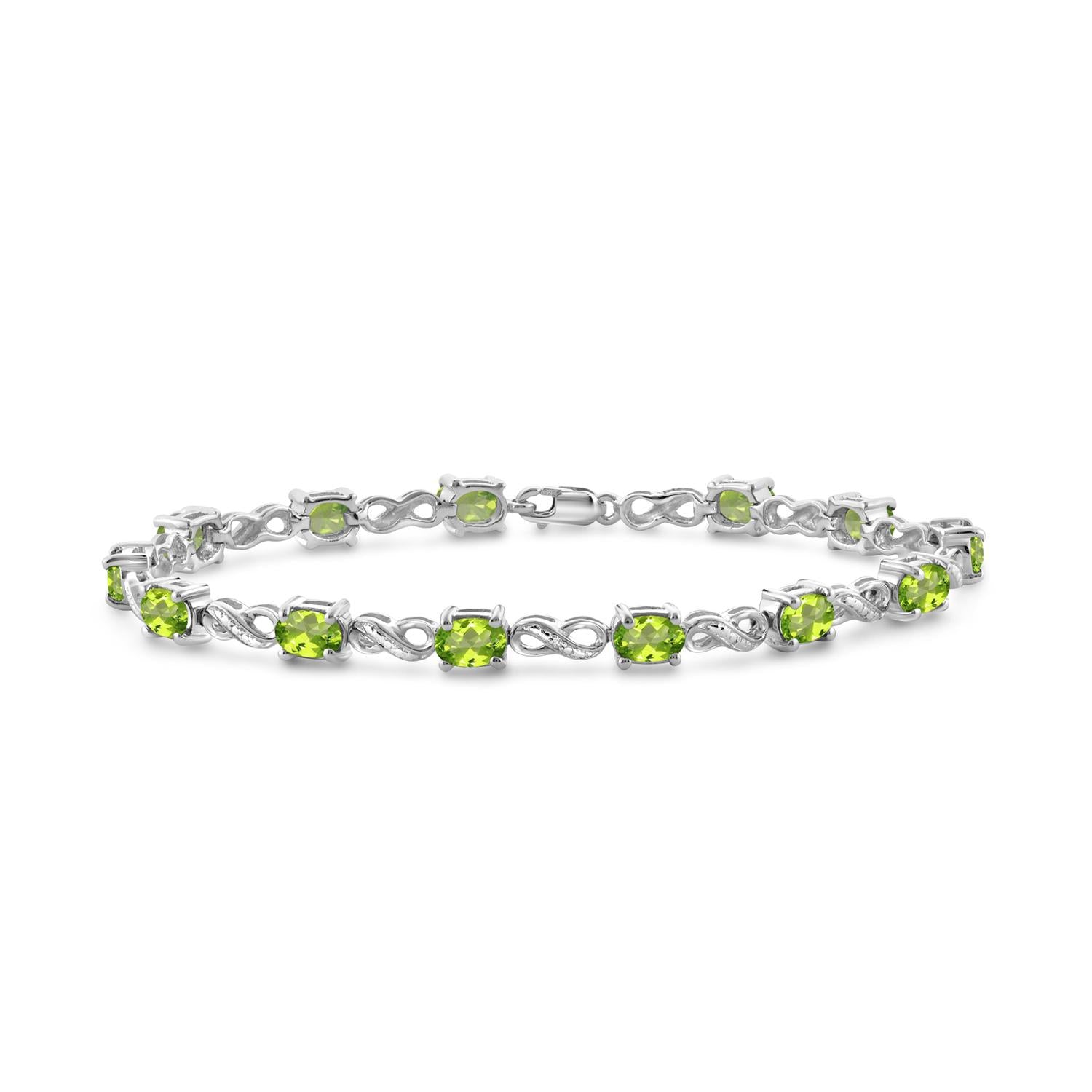 Sometimes all it takes is the delicate blush of sparkle to put a smile on your face! Whenever you need a little uplifting, you like to look for shimmering and richly detailed jewelry pieces that play with light and natural accents to put yourself in a luminous mindset. When you found this gorgeous genuine peridot bracelet, you knew we had just the piece to add a little brightness and beauty back to everyday life. From its intricately crafted sterling silver base, to its sparkling genuine diamond accents, this bracelet brings a signature, lighthearted touch to any look. Brilliant, sweet, and shimmering!