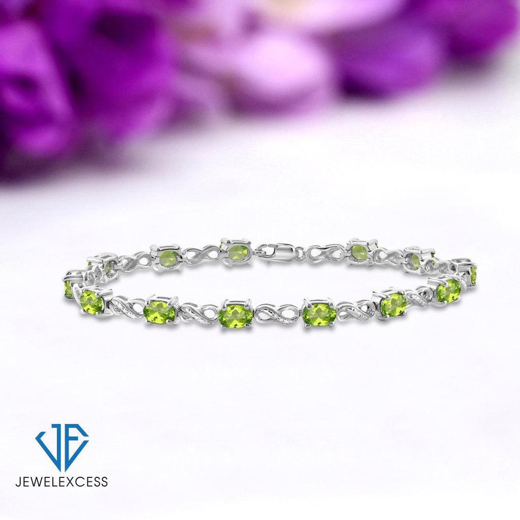 6.20 Carat Peridot & Accent White Diamonds Bracelet in Sterling Silver