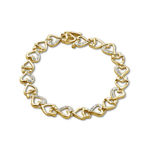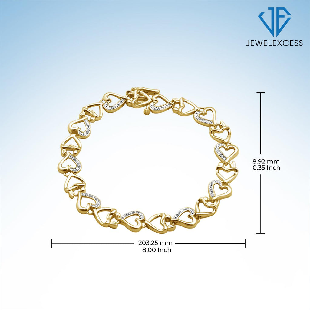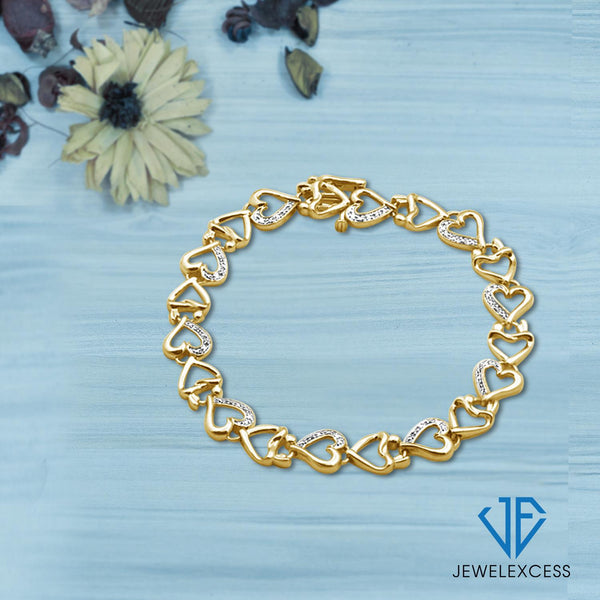 1/20 Carat White Diamond Heart Bracelet in 14K Gold Over Silver
