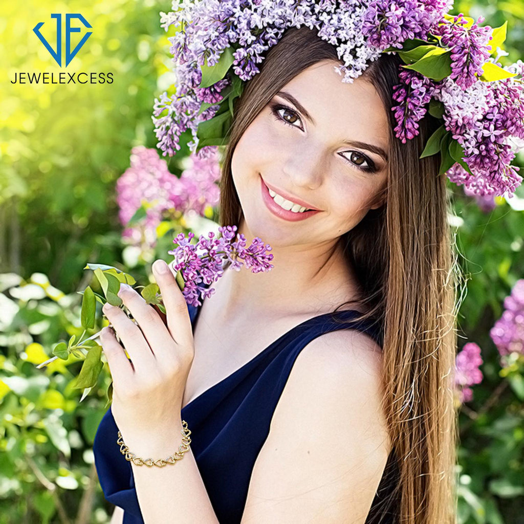 Our Genuine White Diamond Accent Heart Bracelet in Sterling Silver strikes a lovely balance between cute and chic. It boasts a heart-style motif with genuine white diamond-accented links that will shimmer like a shooting star in the sky. It's crafted from your choice of sterling silver or yellow gold-plated sterling silver. Once you slip this stunning sparkler onto your wrist, it'll make your outfit complete, and glisten and shimmer all night long.