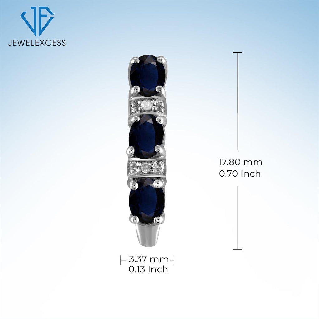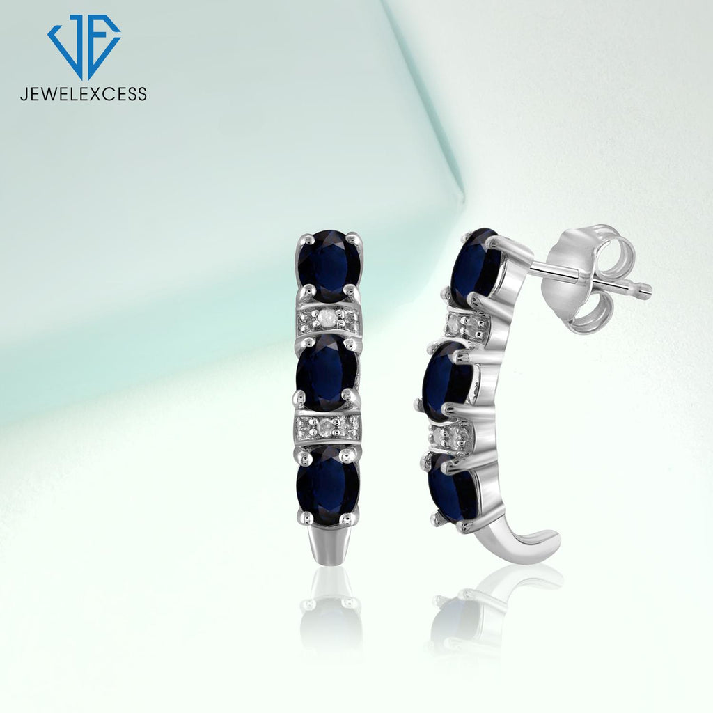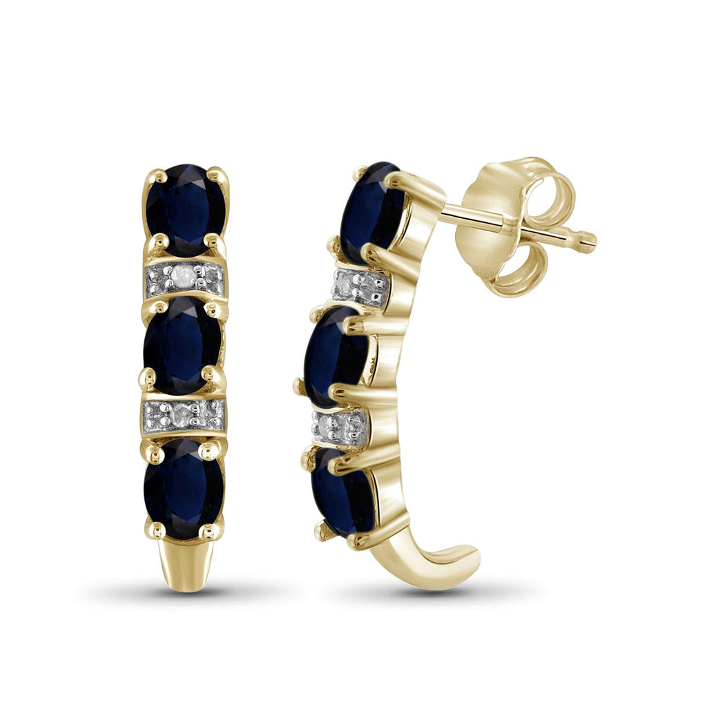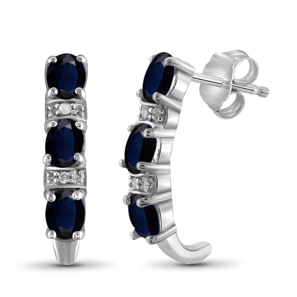 1.30 Carat T.G.W. Sapphire And Accent White Diamond Sterling Silver J Hoop Earrings Or 14K Gold-Plated